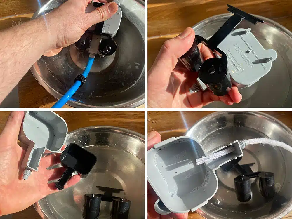 The Floats and Body can then be scrubbed using a toothbrush or even placed in the dishwasher. Once clean and dry, blow through the AQUAvalve nozzle or use a pipe cleaner to remove any build up that has occurred. Nothing more forceful is required in cleaning the nozzle, do not even think about using a drill bit to clear anything stubborn. Doing so will potentially damage the AQUAvalve beyond repair.