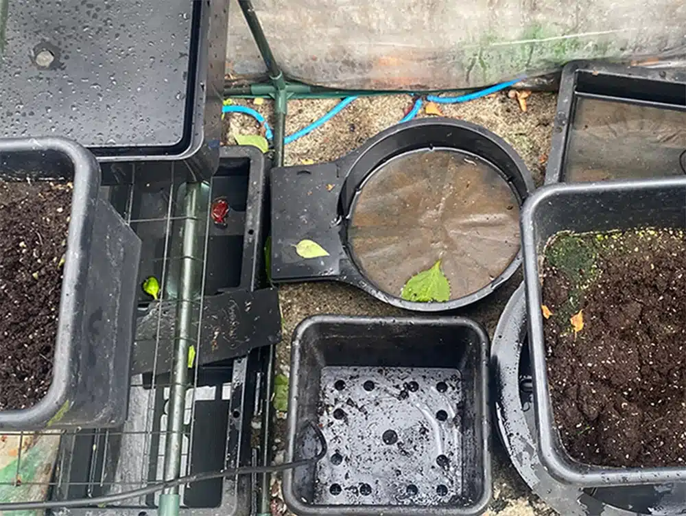 - Remove pots and empty trays