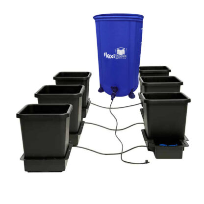 The 6Pot System is easily extended so many pots can be linked to a single reservoir. Please see examples of typical layouts using 3/8″ pipe or 1/2” pipe in the image gallery. The pots & trays can be easily moved at will, if the plants grow too large they can be spaced further apart with ease. Once set up and a reservoir is filled with water & liquid feed this extremely versatile system will completely take care of all your plants needs.